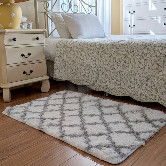 Floor Mat White Poly-Fur Shiny 68cm x 106cm